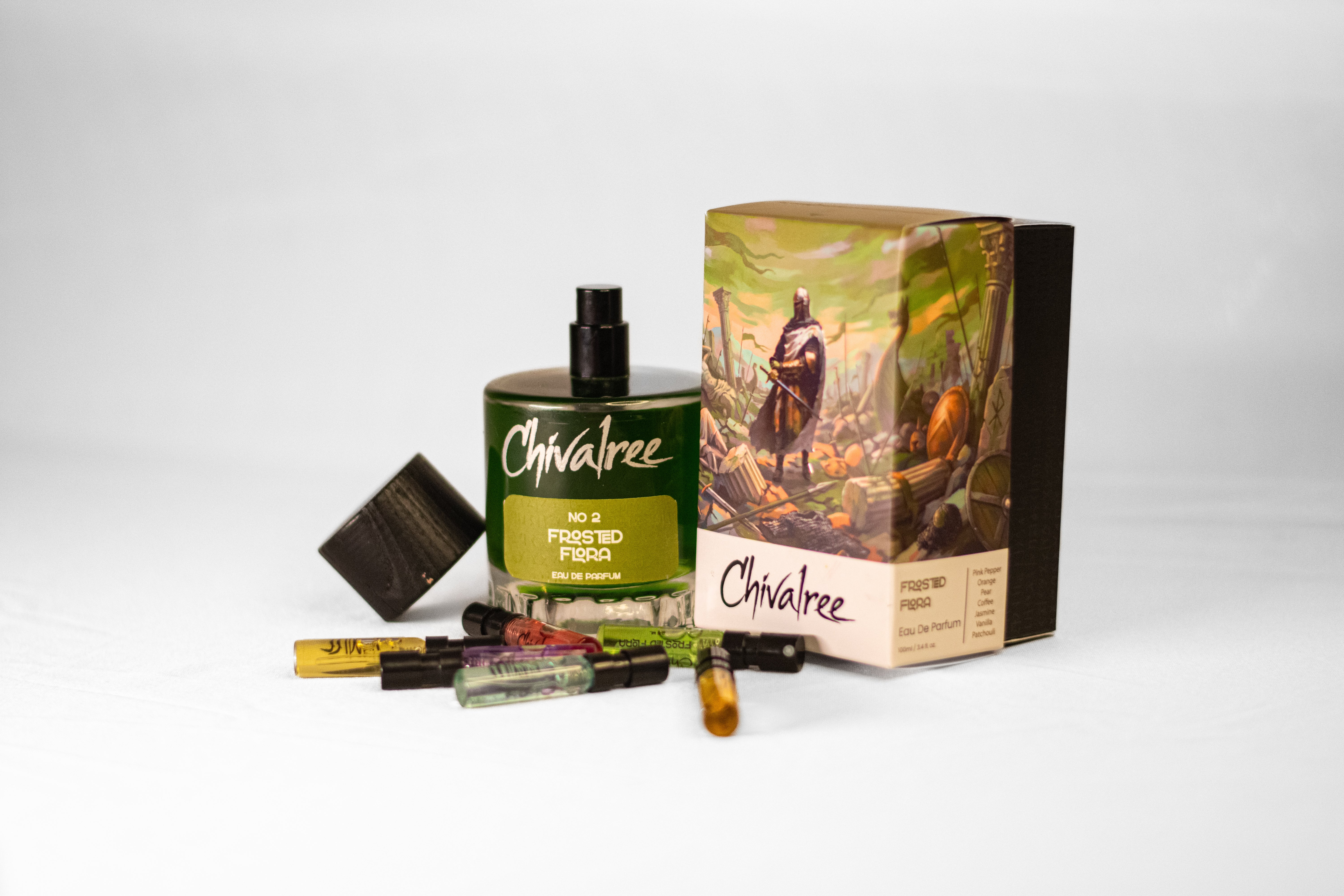 Frosted Flora begins with a vibrant blend of pear and pink pepper, evoking a frosty winter garden. It then transitions to a heart of jasmine and orange blossom, flourishing in the cold. The fragrance's depth comes from a base of rich coffee and warm vanilla, creating a captivating experience that lasts into the night.