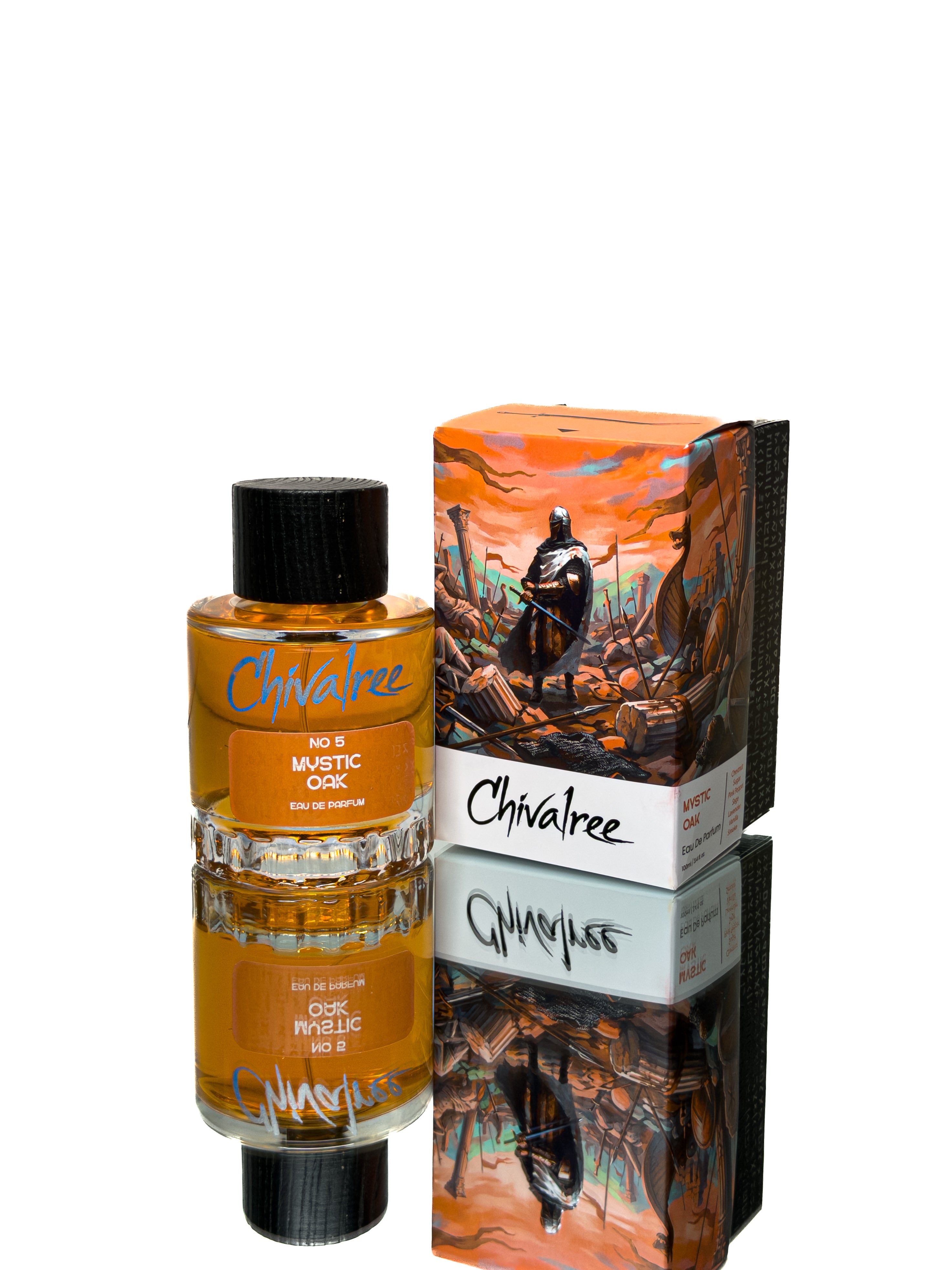 Mystic Oak begins with vibrant pink pepper and cardamom, softened by violet leaves. Its heart features smoky vanilla and crystallized chestnut, evoking warmth like a crackling fire. The finish combines amberwood and guaiac wood, creating a strong, masculine base that balances spicy heat with comforting sweetness.